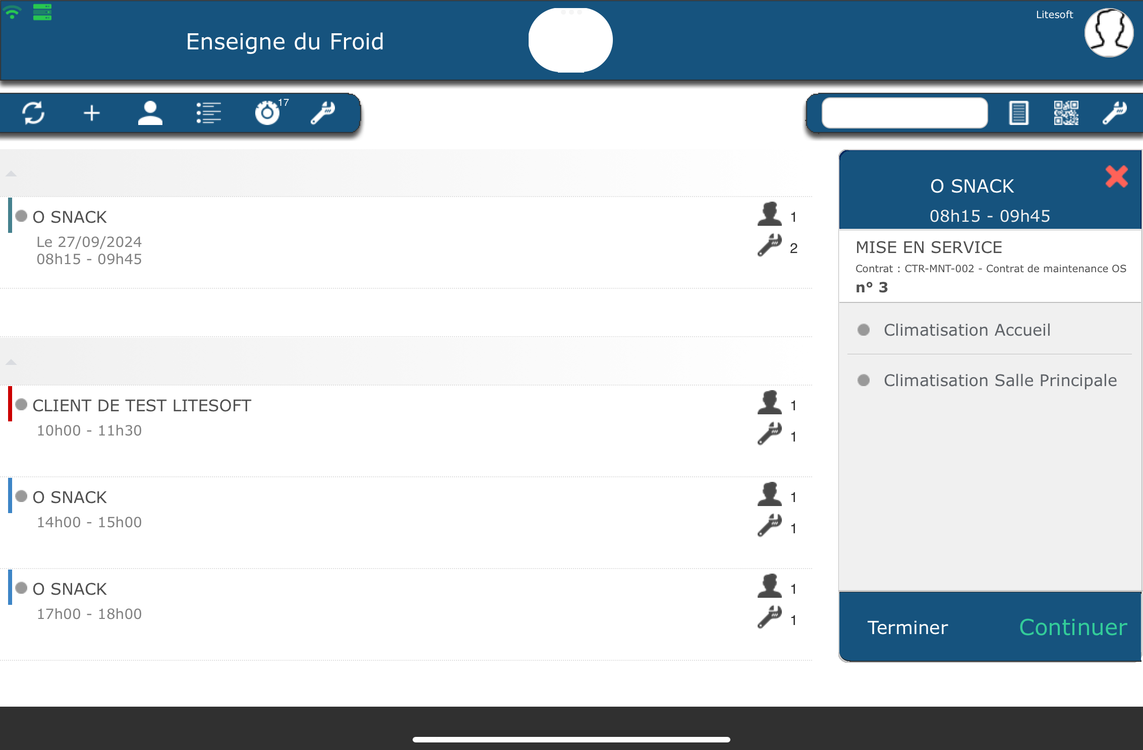 Le planning vous permet de visualiser les prochaines interventions prévues sur vos équipements.