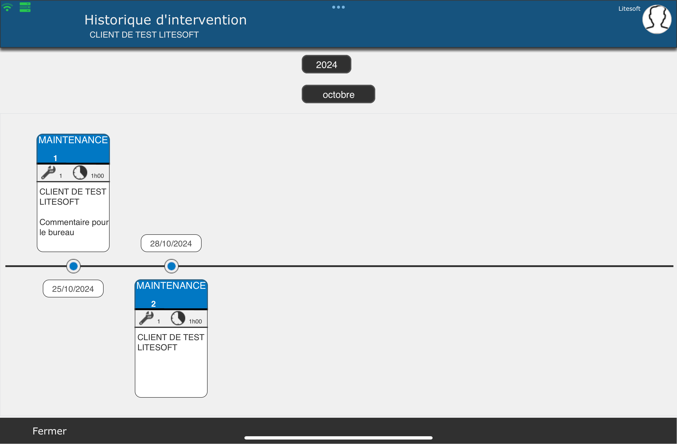 Cette vue permet de visualiser toutes les interventions qui ont été effectuées sur vos équipements.