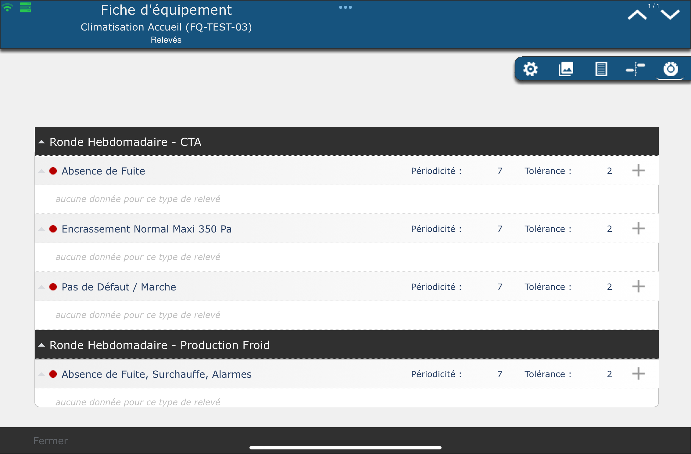 Vous avez accès à l'historique complet des interventions et des relevés effectués sur vos équipements.